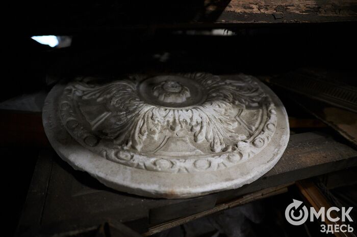 Потолочная розетка и маскарон, который отливался для реставрации дома Кадыша на Думской, 5