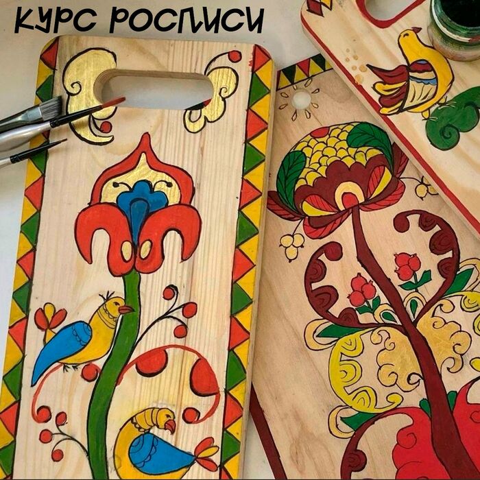 - Занятие №1: знакомство с историей промысла, создание эскиза. Подготовка дощечек: шлифовка и грунтовка.