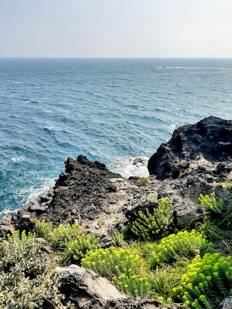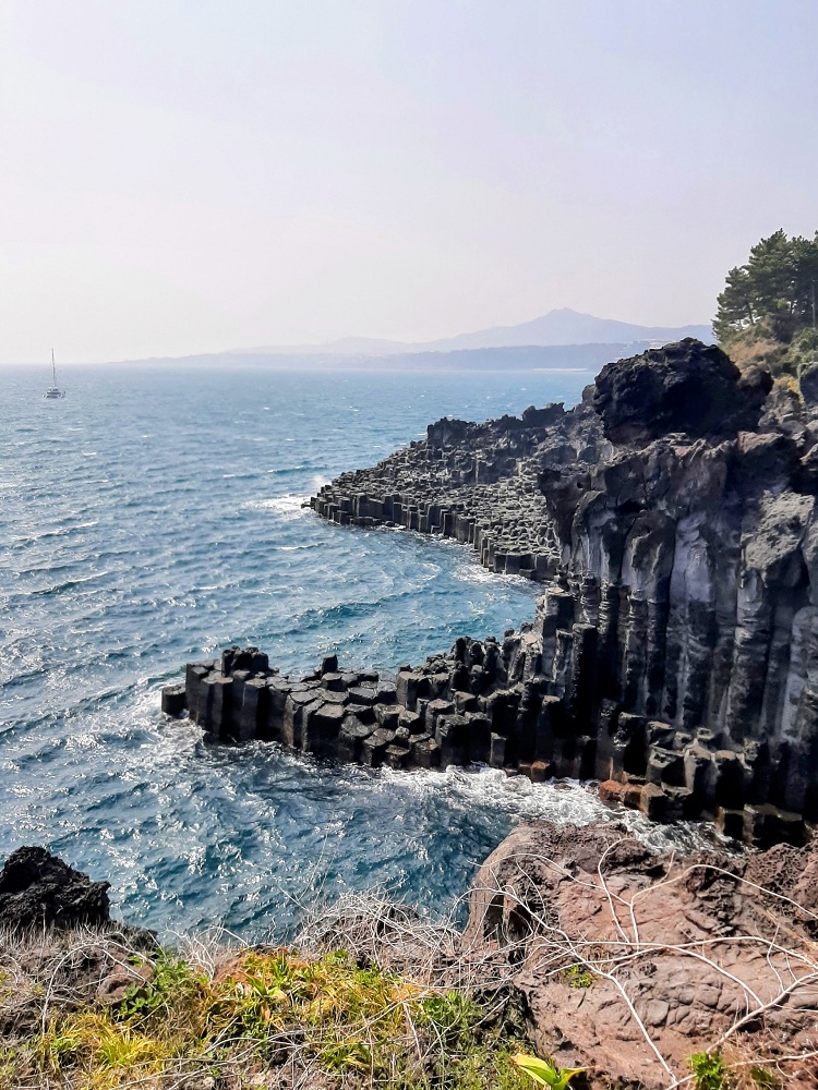 25 тысяч лет назад здесь извергался вулкан, весь остров состоит из застывшей лавы. Удивительное природное образование острова - скалы Чусан Чолли - вертикальные базальтовые столбы, застывшие миллионы лет назад. Когда лава из вулкана Халласан стекала по склонам и остывала, она образовала эти удивительные геометрически правильные колонны высотой до двадцати метров. Волны ударяются о скалы, брызги летят, сильный ветер - сила и красота стихии завораживают. Ещё на Чеджудо находится Чонбан - единственный в Азии водопад, который падает прямо в океан.
