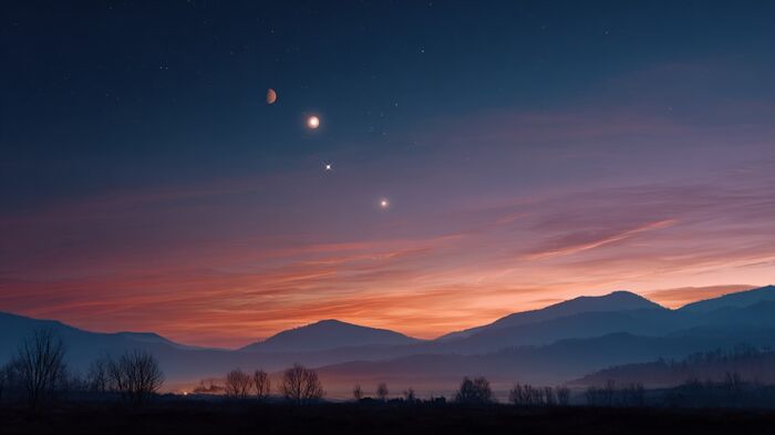 Буквально пару недель назад омичи любовались завораживающими северными сияниями, которые обрушились на регион в ночь на 3 апреля. Теперь астрономы предупреждают жителей города о новом небесном представлении - 18 апреля Меркурий, Марс, Сатурн и Нептун окажутся близко друг к другу на утреннем небе. Планеты будут находиться очень низко в ярких предрассветных сумерках.