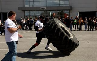 Во время соревнований было и несколько пауз - зрителям предлагали за подарки принять участие в экстремальных конкурсах. Например, отбуксировать автомобиль, перевернуть покрышку или поднять бревно. Силачи надеются, что их выступление вдохновит зрителей на занятия спортом. Возможно, кого-то это сподвигнет записаться в зал или просто делать зарядку каждое утро.