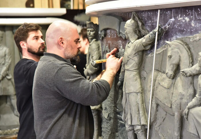 Работа над прототипами барельефов. Фото предоставлено пресс-службой администрации Омска