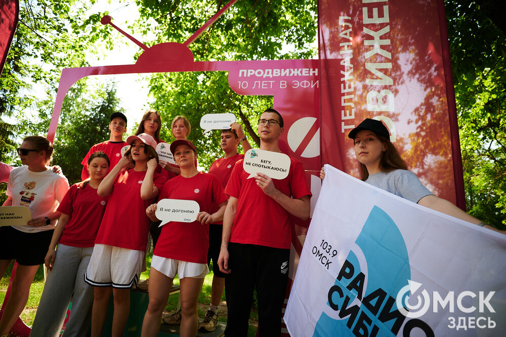 В забеге приняли участие сотрудники редакции "Омск Здесь", "Радио Сибирь" и телеканала "Продвижение". На площадке была установлена специальная фотозона, где все желающие могли сфотографироваться с медалями, ведущими радиостанции и телеканала, а также забавными табличками, подготовленными специально для спортивного события.