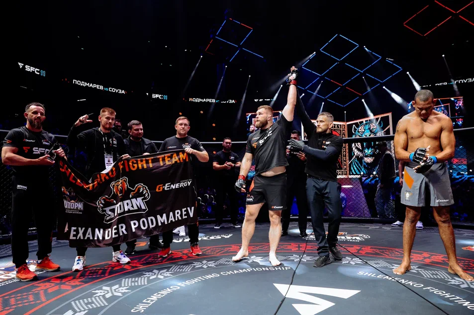 Ярким выступлением порадовал местных болельщиков в со-главном событии вечера Александр Подмарёв, за 114 секунд нокаутировавший Роджерса Соузу из Бразилии. Омский тяжеловес уверенно перебоксировал соперника, оформил несколько нокдаунов, и на исходе второй минуты рефери в октагоне остановил поединок, после того как южноамериканец прекратил активно защищаться.