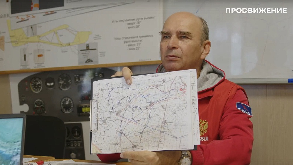 Пилоты и их штурманы соревнуются в навигации, скорости, точности и умении экономить топливо. Их самолёты хоть и сверхлёгкие, но задачи - тяжёлые. Главный судья Александр Рычков показывает схему витиеватого маршрута, который нужно преодолеть спортсменам.