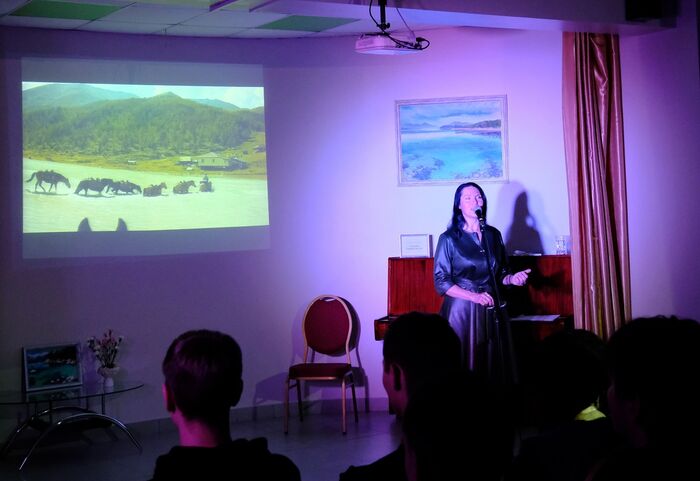 25 ноября в Областной библиотеке для детей и юношества состоялся мой моноспектакль "Заповедная поэзия: из Омска на Алтай". Я читала стихи, посвящённые Сибири и Алтаю, в сопровождении собственных коротких видеороликов. Зрители увидели Шавлинские озёра, Катунь, Белуху, Улаганское плато, плоскогорье Укок и многое другое. Моменты алтайской жизни и реалии походов, табуны коней и преодоление на рафте горных рек. Дважды показала программу и уже много душевных, хороших отзывов получила. Рада, что проект удался. Будут ещё показы. А специально для премьеры развесила в библиотеке и свои картины, пейзажи Алтая. Благодарю Областную библиотеку для детей и юношества за поддержку!